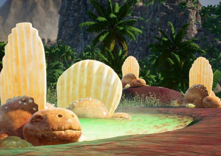 Nach dem Bad in heißen Quellen kleben auf den Rücken der Kartofflodons leckere Salzstückchen. Ginger und die Erbs-Rexe würden nichts lieber tun, als Salz zu schlecken. Ein Plan wäre gut!