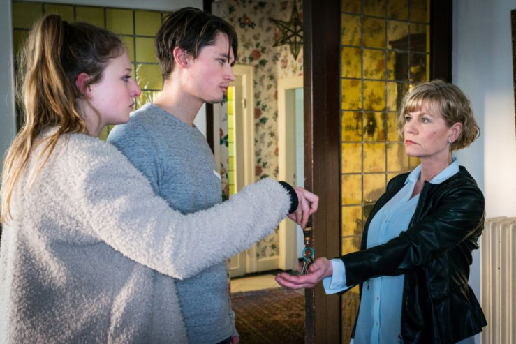 Karin (Anne Kasprik, l.) denkt, dass Maren (Henriette Nagel, M.) Fabians (Gordon Kämmerer, r.) geistige Behinderung ausnutzt und nur hinter seinem Geld her ist.