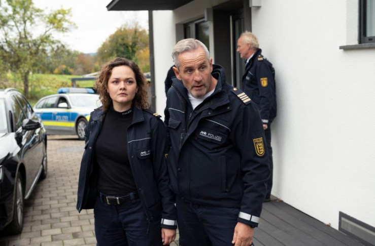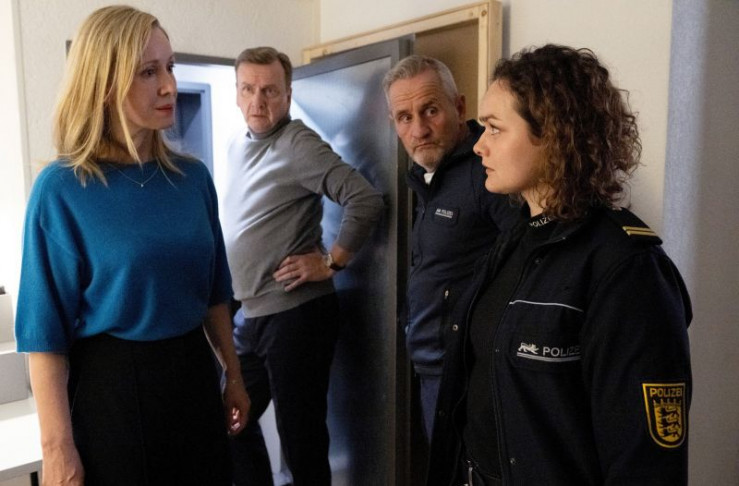 Das Team der Wapo Bodensee: Nele Fehrenbach (Floriane Daniel, 2.v.l.) mit dem neuen Kollegen Jakob Frings (Max König, 2.v.r.), Paul Schott (Tim Wilde, l.) und Julia Demmler (Wendy Güntensperger, r.).
