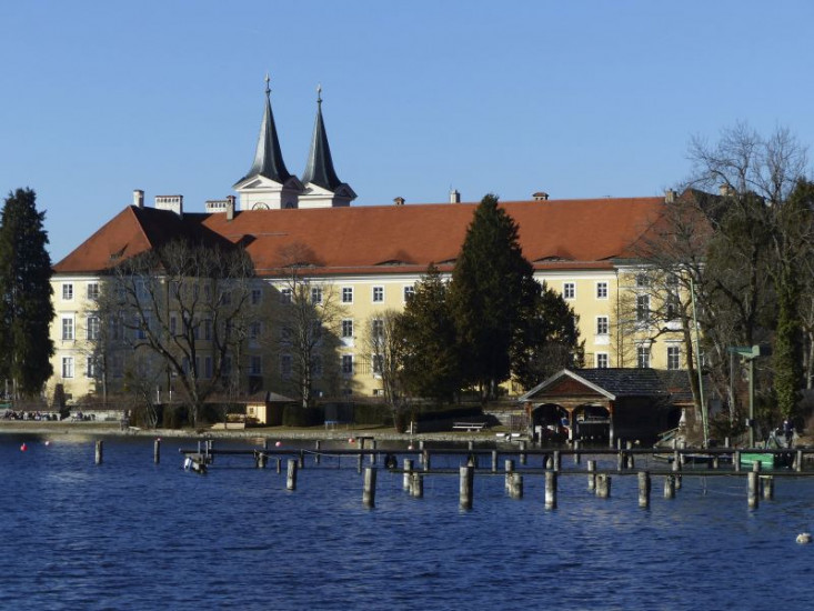 Ehemalige Benediktinerabtei Tegernsee, die König Max I. Joseph 1817 kaufte und durch den Hofarchitekten Leo von Klenze in eine königliche Sommer- und Familienresidenz umbauen ließ.