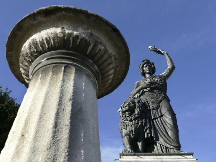 Bavaria und Ruhmeshalle als Bayerisches Nationaldenkmal, privat finanziert von König Ludwig I., gestaltet von Ludwig Michael Schwanthaler (1802-1848) (Bavaria), gegossen von Ferdinand von Miller (1813-1887) (Bavaria) und erbaut von Leo von Klenze (Ruhmeshalle), 1843-1850 bzw. 1853.