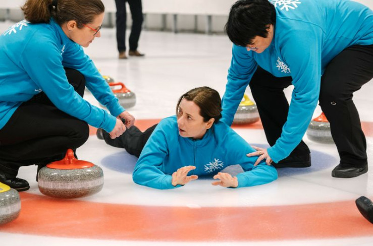 Peinlicher Ausrutscher: Maren (Inka Friedrich, Mitte) stürzt beim Curling.