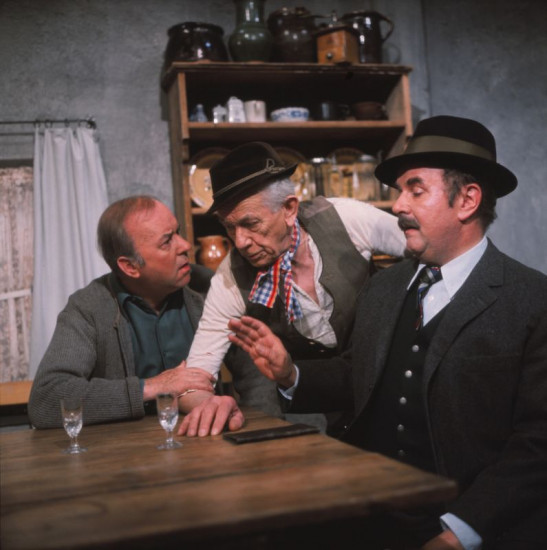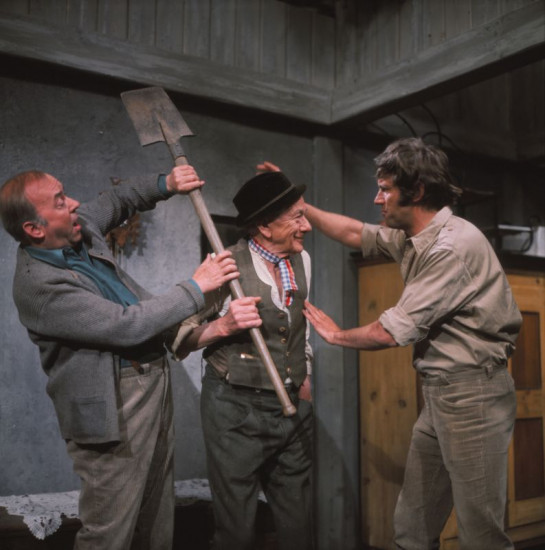 Der Handel um den Großvater (Ludwig Schmid-Wildy, Mitte). Der reiche Haslinger (Walter Sedlmayr, rechts) bietet eine hohe Summe für den Großvater, und der Kreithofer (Toni Berger) ist ganz entsetzt darüber, dass er seinen Großvater verkaufen soll. Weiteres Bildmaterial finden Sie unter www.br-foto.de.