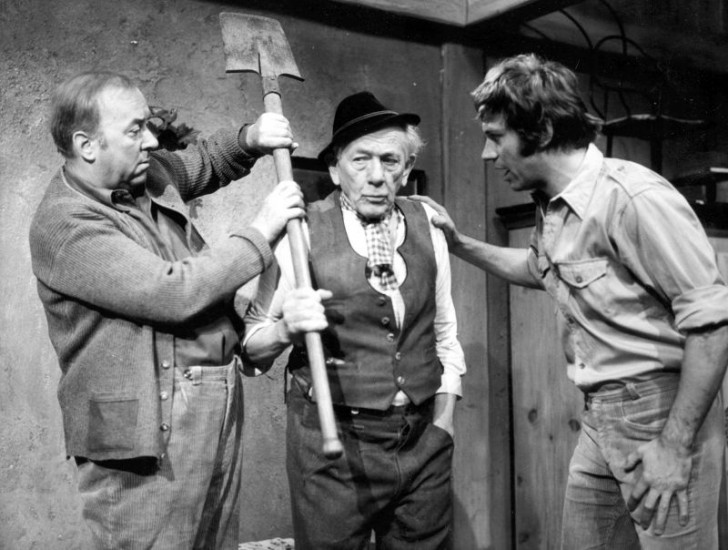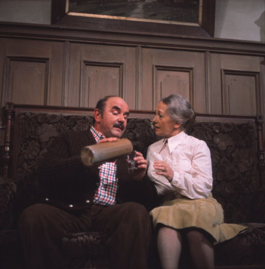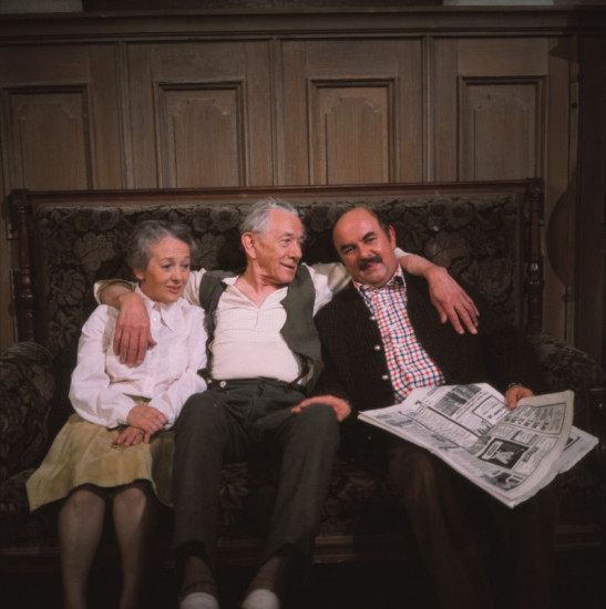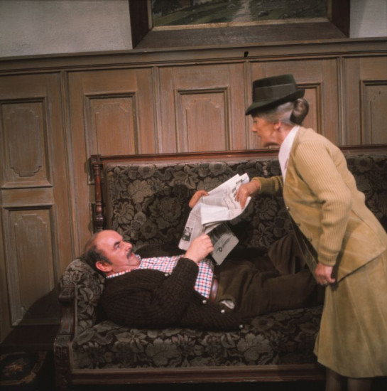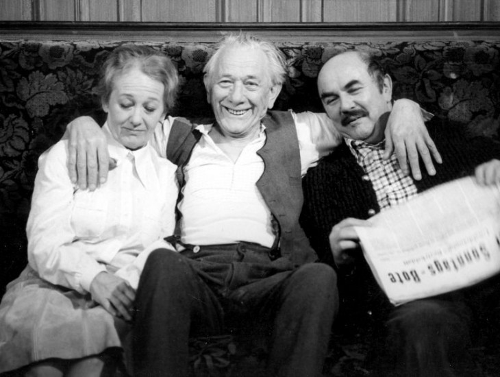 Mit süßsauren Mienen "verwöhnen" der Haslinger (Walter Sedlmayr, rechts) und seine zänkische Frau Nanni (Erni Singerl) den Großvater (Ludwig Schmid-Wildy), den sie sich für teures Geld gekauft haben. Sie wissen auch genau, warum: Sie wollen den Großvater beerben.
