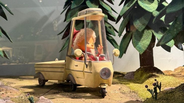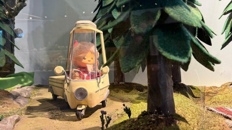 Der Sandmann schwebt durch die Sandmann-Ausstellung in Dessau-Roßlau.