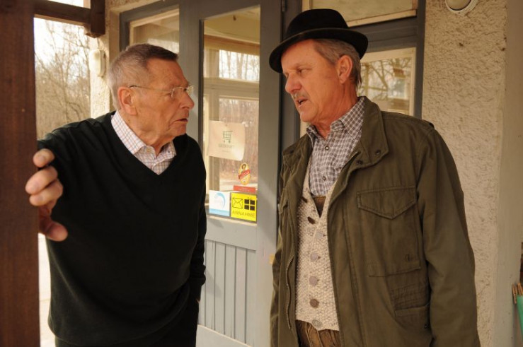 Alois versucht bei Schattenhofer den Mietpreis zu drücken. Von links: Alois Preissinger (Erich Hallhuber ) und Lorenz Schattenhofer (Werner Rom).