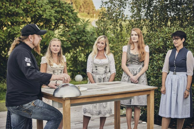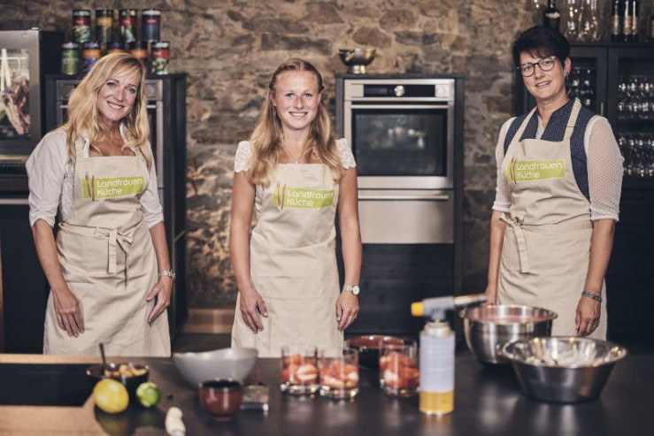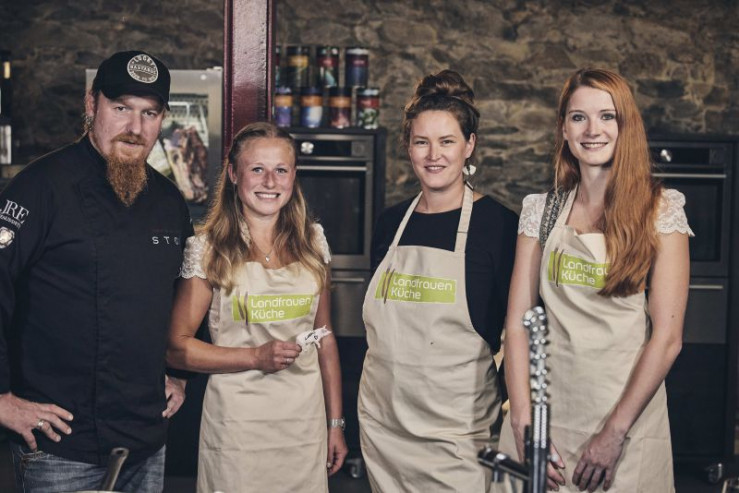 Von links: Lucki Maurer verkündet Lena Zimmermann, Nicole Roth, Monika Bernhard und Karina Schwarzbauer die Siegerin des Grußes aus der Küche.