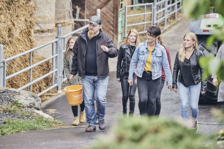 Von links: Lucki Maurer führt die Landfrauen Nina Wagner (links hinter Lucki Maurer), Monika Bernhard, Karina Schwarzbauer und Lena Zimmermann zur Rinderweide.
