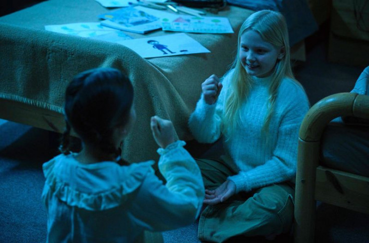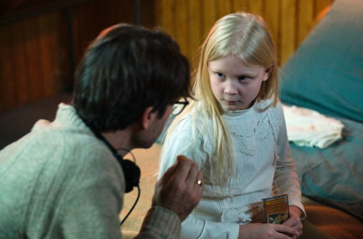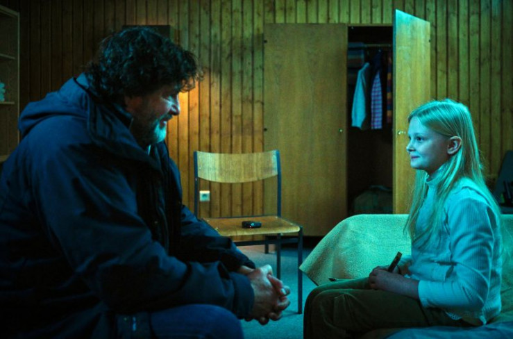Im Uhrenkasten findet Friedemann Berg ein kleines Mädchen (Hanna Heckt), das sich ängstlich versteckt hält.