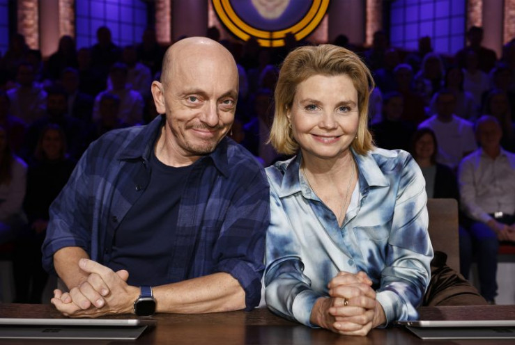 Rateteam-Kapitäne Bernhard Hoëcker (l.) und Schauspielerin und Komikerin Annette Frier (r.).