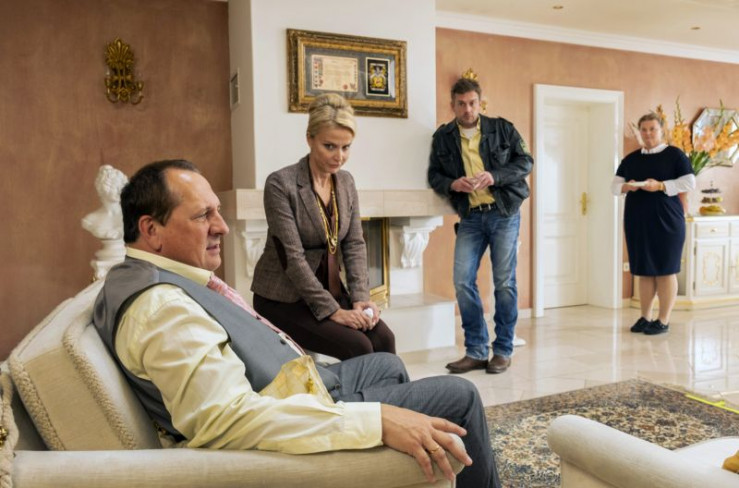 Franz Eberhofer (Sebastian Bezzel, 2. v. .re.), der Bürgermeister (Thomas Bügel), seine Frau (Ursula Gottwald) und die Haushälterin Margot (Ulrike Beimpold).
