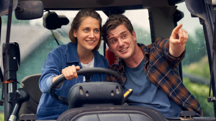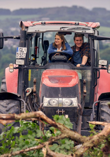 -Generisches Motiv - Laura (Bettina Burchard, li.) fährt mit Paul (Max Bretschneider, re.) Traktor.