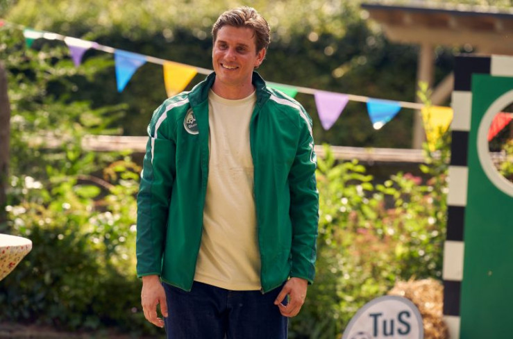 Laura (Bettina Burchard) trifft auf dem Dorffest auf Paul (Max Bretschneider) und verblüfft ihn beim Torwandschießen.