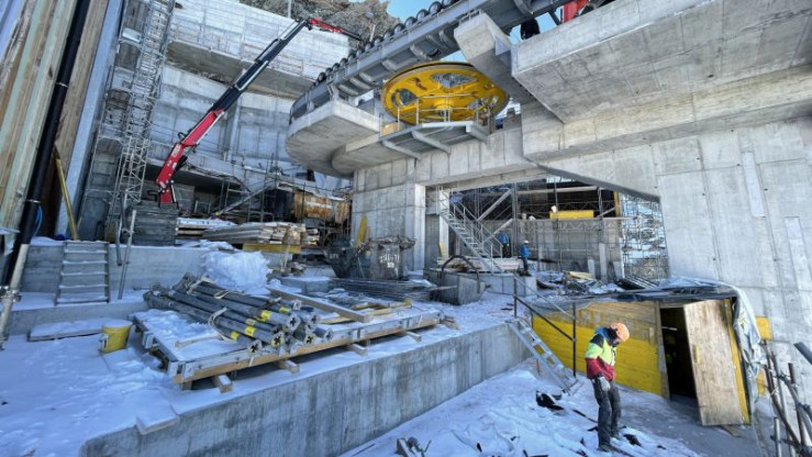 Mit Hilfe von LKW, Materialseilbahn und Helikopter werden die Bestandteile transportiert.