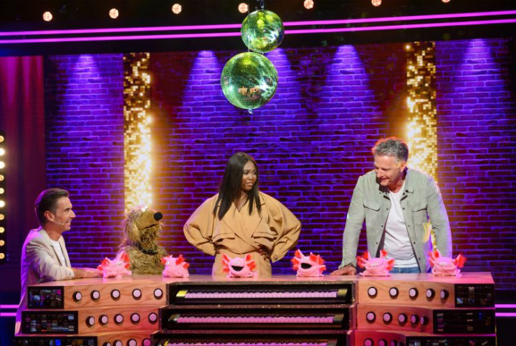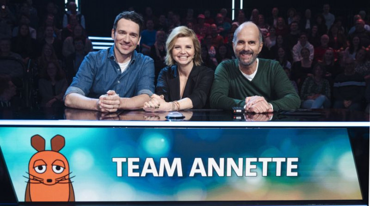 Team Maus spielt um 25.000 Euro für den guten Zweck: v.l.n.r. Jörg Pilawa, Teamkapitänin Annette Frier und Michael Mittermeier.