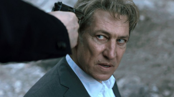 Der zwielichtige Unternehmer Lindner (Tobias Moretti) blickt in den Lauf einer Pistole.