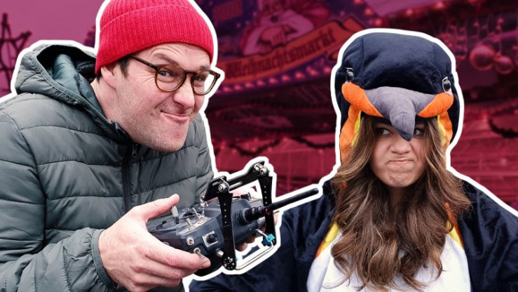 Ben jagt Sarah ferngesteuert über den Weihnachtsmarkt in Erfurt.