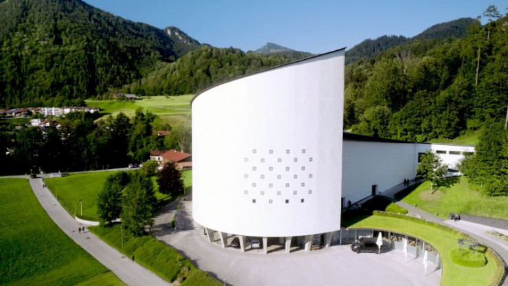 In dem kleinen Tiroler Dorf nah der bayrischen Grenze schlendert das Publikum über die grüne Wiese zum architektonisch und akustisch herausragenden Festspielhaus. Der schwarze, scharfkantige Bau wirkt wie ein auf der Wiese gelandetes Ufo.