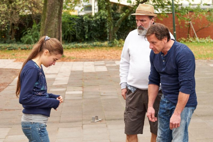 Stefan (Hendrik Duryn, r.) und Karins Vater Walter Schilling (Andreas Hoppe), eine erziehungswissenschaftliche Koryphäe, machen mit der extrem schüchternen Judith