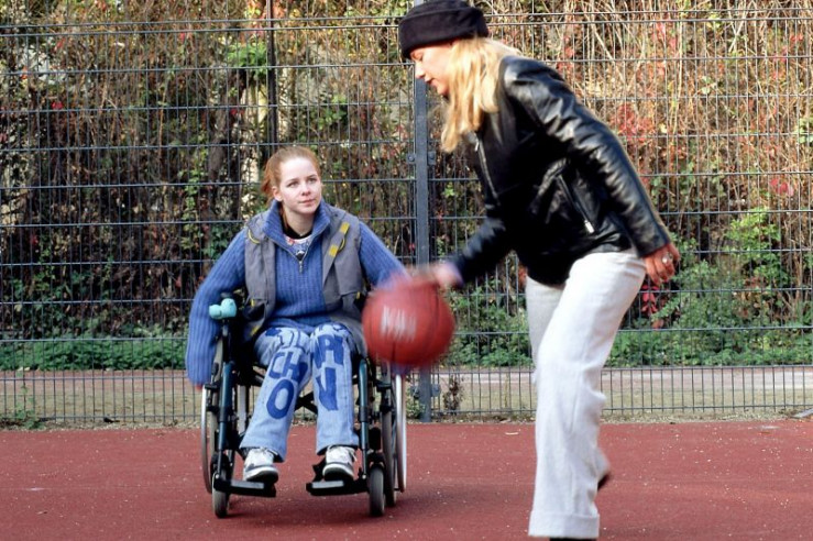 Alex (Alexandra Neldel, r.) spielt mit ihrer behinderten Schwester Lisa (Jasmin Schwiers) Baskettball