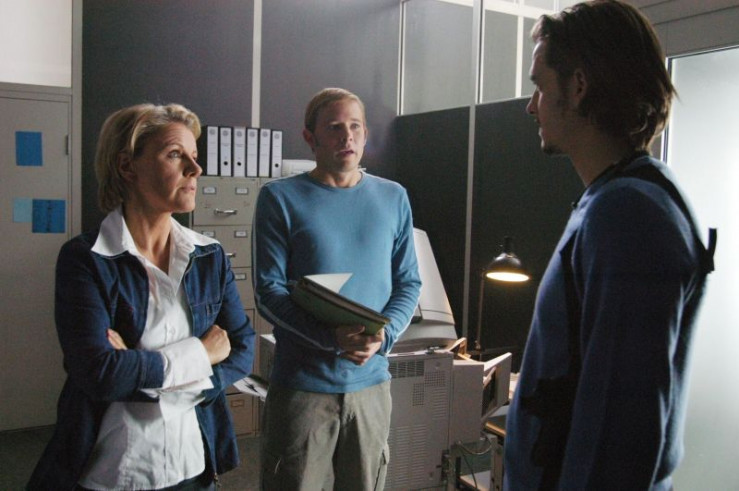 Kommissarin Seiler (Mariele Millowitsch) und ihr Kollege Fischer (Max von Thun) verhören Milan (Nikolai Kinski, l.). Hat er den Mann seiner Geliebten ermordet?