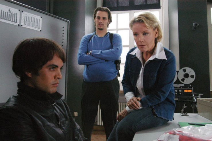 Kommissarin Seiler (Mariele Millowitsch) und ihr Kollege Fischer (Max von Thun) verhören Milan (Nikolai Kinski, l.). Hat er den Mann seiner Geliebten ermordet?
