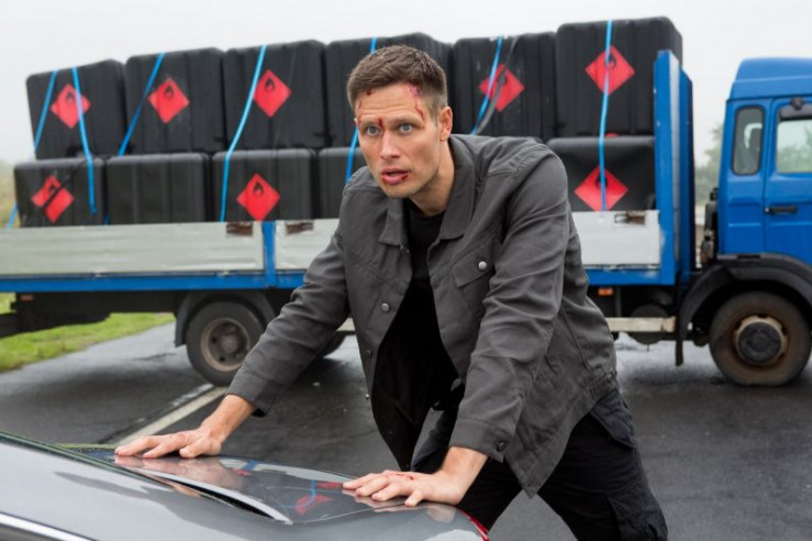 Paul (Daniel Roesner, r.) und Jenny (Katrin Heß) befragen Emmo (Michael Roll) nach dem Firmen-SUV, der an den Unfällen beteiligt war. +++ Die Verwendung des sendungsbezogenen Materials ist nur mit dem Hinweis und Verlinkung auf RTL+ gestattet. +++
