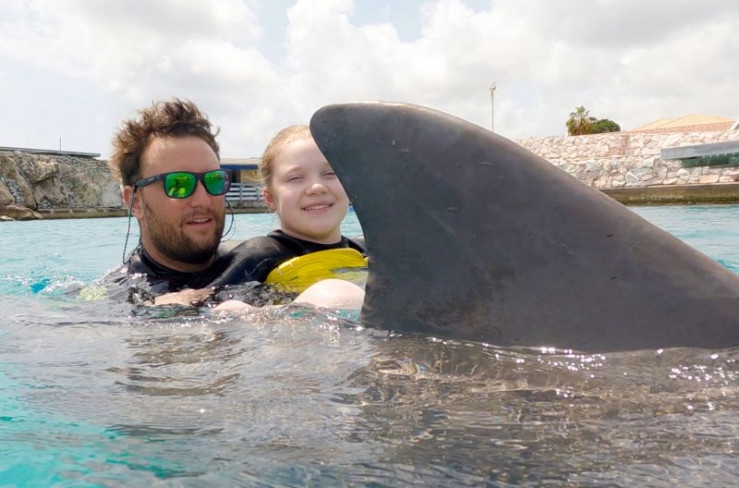 Delfintherapie mit Therapeut Markus Mesing und Patientin Helena