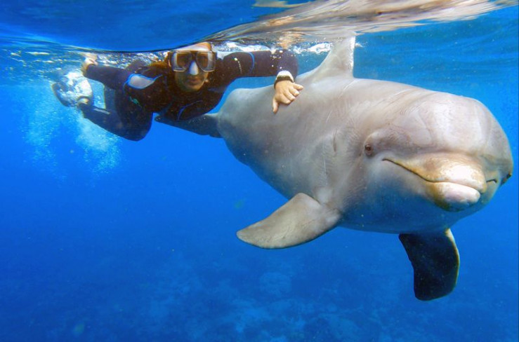 Ausflug ins Meer ? Delfintrainerin Romy von Leeuven schwimmt mit einem Großen Tümmler.