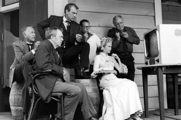 Columbia Ranch, 1951: Dreharbeiten zum Film "?High Noon?" mit Lon Chaney Jr., Grace Kelly, Carl Foreman, Gary Cooper und Thomas Mitchell (v.r.).