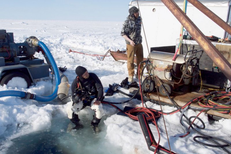 Unter dem Eis im minus zwei Grad kalten Wasser suchen Derek (li.) und seine Kumpel nach Gold. Die größte Gefahr dabei: das Tauchen in fünf Meter Tiefe ...