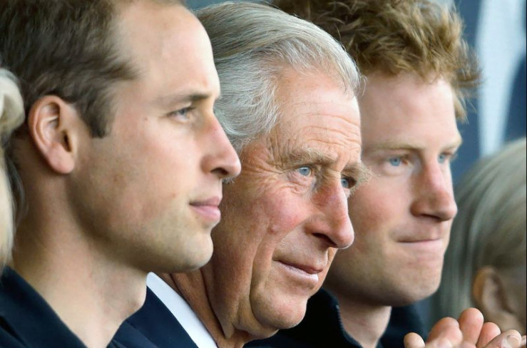 Charles (Mi.) und seine Söhne Prinz William (li.) und Prinz Harry (re.) bei den Invictus Games in London im Jahr 2014