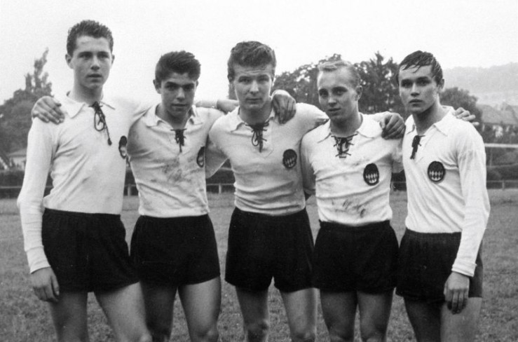 Franz Beckenbauer (li.) mit seiner Jugendmannschaft: Nach dem Krieg wächst er in einfachen Verhältnissen im Münchner ?Glasscherbenviertel? Giesing auf.