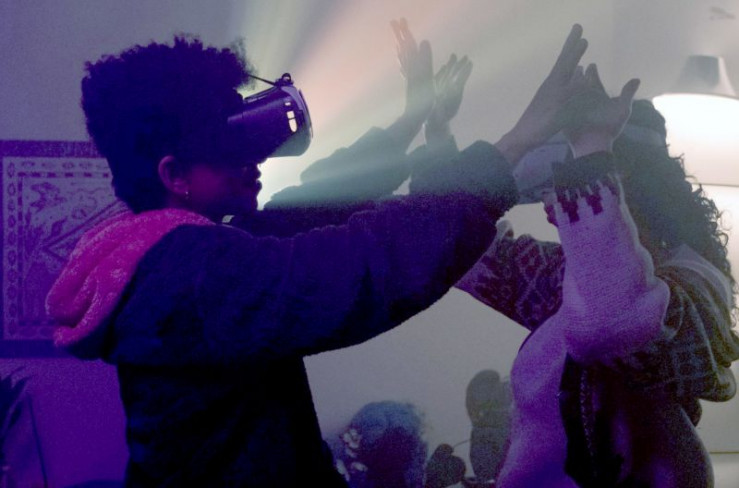 Zwei Freunde teilen sich in einer virtuellen Realität denselben Körper.