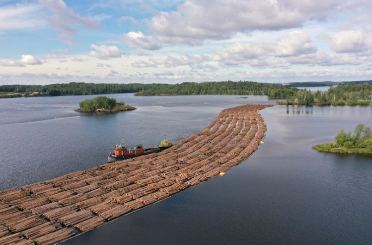 Der Flößer Taisto muss ein 900 Meter langes Holzfloß unbeschadet über den Saimaa-See schiffen. Eine altbewährte Methode, mit der seit Jahrhunderten Holz durch das Land transportiert wird.