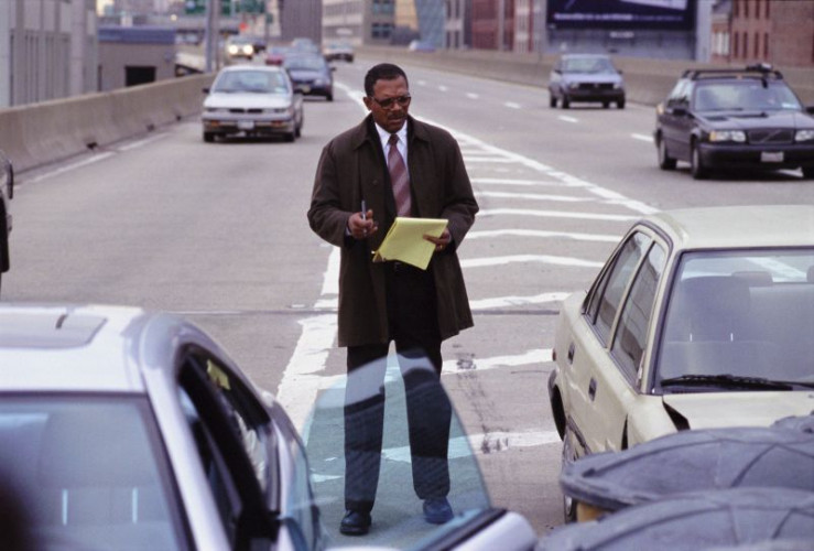 "Viel Glück beim nächsten Mal." Gavin (Ben Affleck) lässt Doyle (Samuel L. Jackson) mit einem Totalschaden am Unfallort zurück.