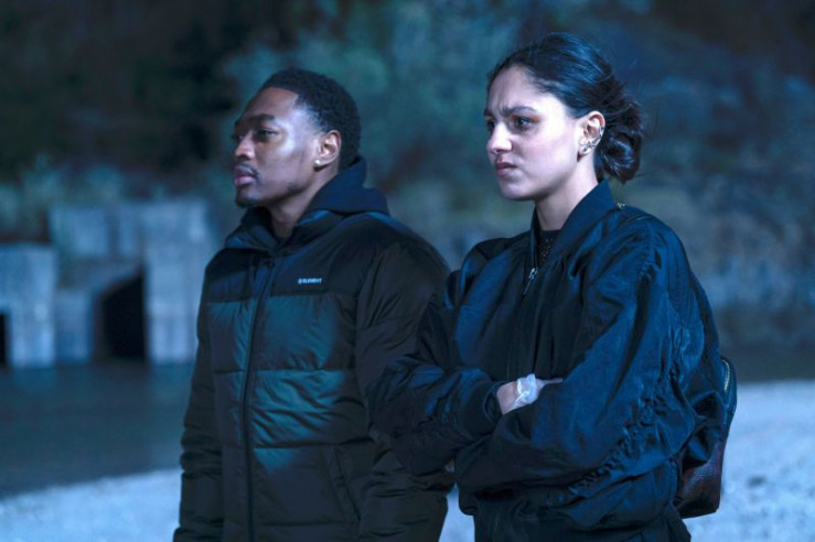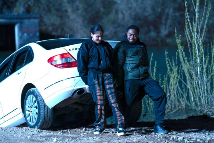 Ben (Gamba Cole, r.) und Rani (Rhianne Barreto, l.) versuchen, das Auto von Smiler in einem See zu versenken.