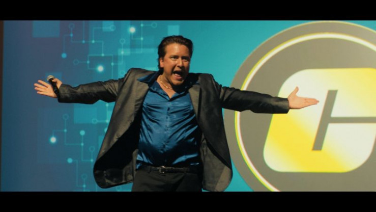 Ruja Ignatova (Nilam Farooq) hält bei einer Frankfurter Messe einen Vortrag über Kryptorente.