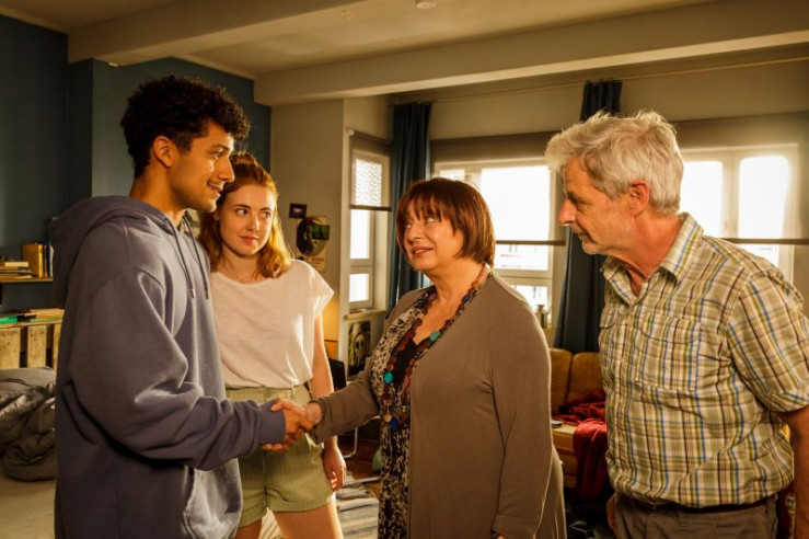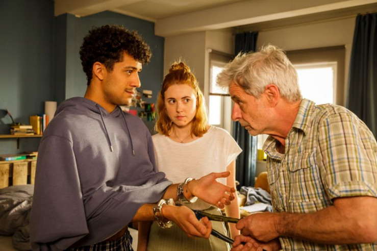 Für Yannik (Rojan Juan Barani, l.) hätte es kein schlimmeres erstes Kennenlernen mit Jákup (Rolf Berg, r.) dem Vater von Caro (Meriel Hinsching, M.) geben können.