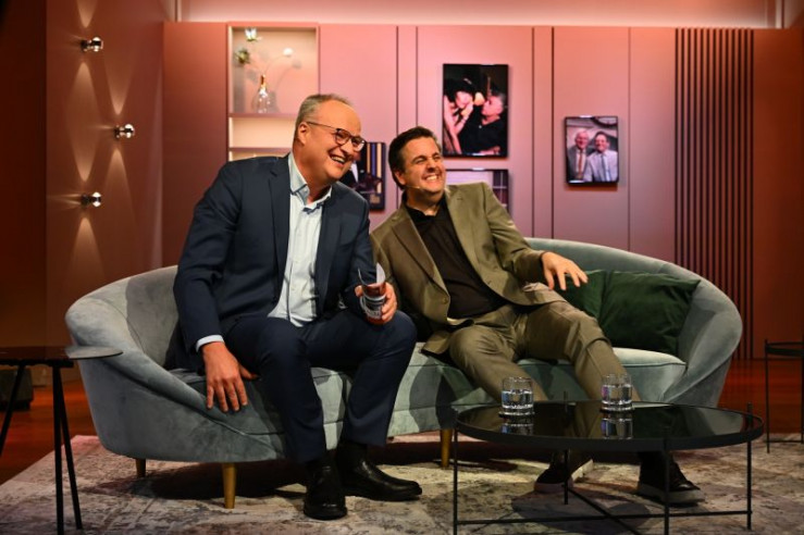 Können sich das Lachen oft nicht verkneifen: Die beiden Hosts Oliver Welke (l.) und Bastian Pastewka (r.) in ihr ZDF-Show "Welke & Pastewka - Wiedersehen macht Freude!".