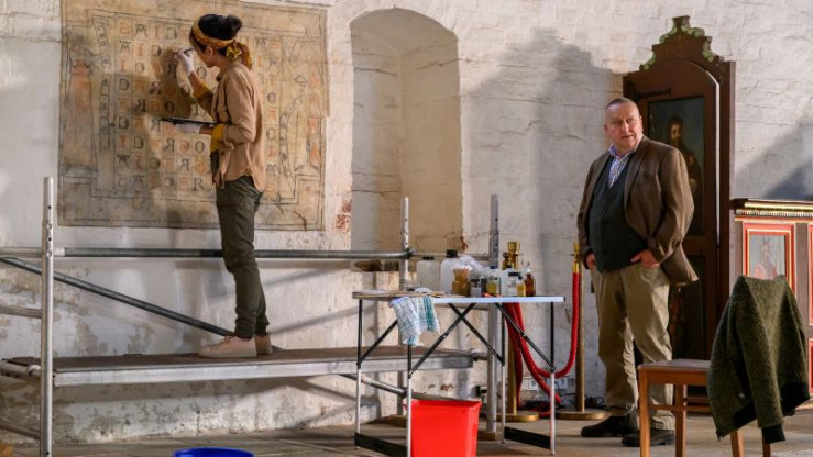 Die talentierte Kirchenmalerin Anna wird tot in ihrem Bett aufgefunden - vergiftet. Das Einschlafspray auf ihrem Nachttisch war mit Fentanyl versetzt. Hat ihr Lebensgefährte Max Artner (Jannik Mioducki, r.) etwas mit ihrem Tod zu tun? Karoline Joost (Nike Fuhrmann, l.) will herausfinden, woher das Spray stammt.