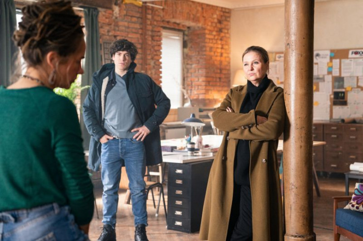 Die Polizeikommissare Vera Lanz (Katharina Böhm, l.) und Paul Böhmer (Jürgen Tonkel, r.) befragen Helena Falkenbach (Ulrike C. Tscharre, M.) zu dem Fehlalarm auf ihrem Anwesen in der vergangenen Nacht.