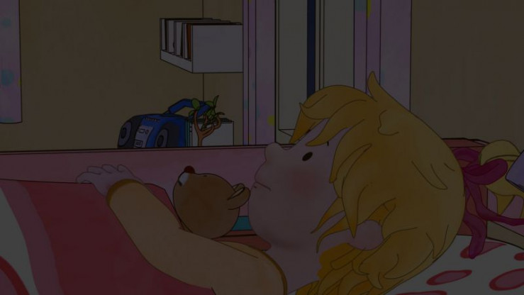 Conni blickt auf ihr Bild, ein Monsterfreund für ihr Monster unter ihrem Bett.