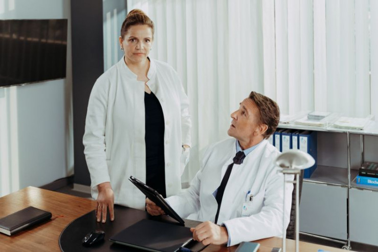 Nach einem Ultraschall in der Praxis ist klar: Die Patientin hat eine Raumforderung in der Gebärmutter, die Martin gerne näher untersuchen möchte. Doch wegen einer finanziellen Notlage ihres jungen Unternehmens stellt die Fluglehrerin ihre Gesundheit hinten an.