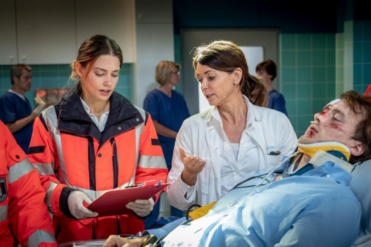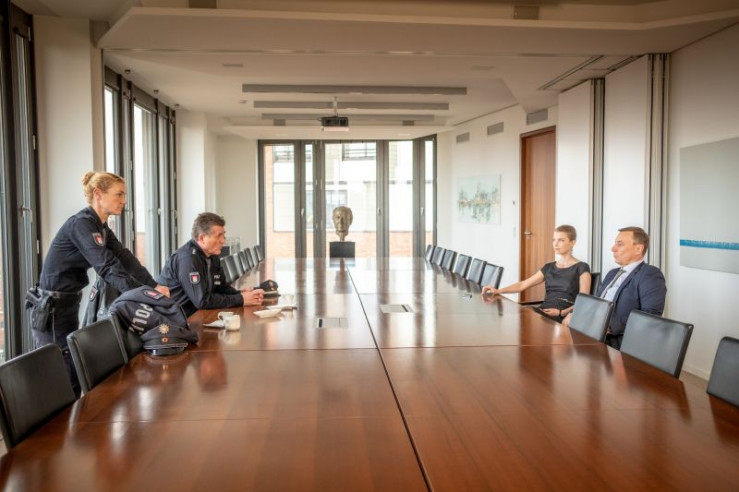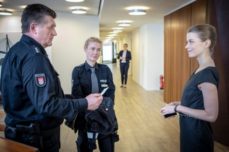 Als Hans (Bruno F. Apitz, l.) und Franzi (Rhea Harder-Vennewald, M.) Maren Schäfer (Jana Klinge, r.) nach Hause bringen, müssen sie feststellen, dass in die Wohnung der Schäfers eingebrochen wurde.