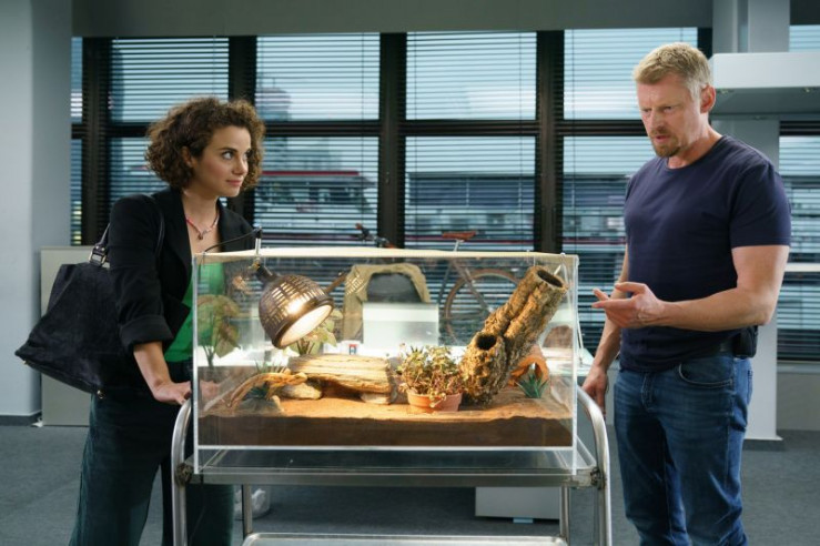 Bezirksinspektor Klaus Lechner (Andreas Kiendl) versucht Raphaela Haas (Xiting Shan) aus der Schusslinie zu bringen.