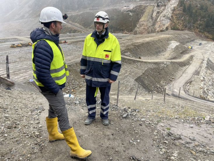Kühtai - Felix Neureuther (links) und Klaus Feistmantl (Projektleiter, Tiwag) auf der höchstgelegensten Kraftwerksbaustelle in Mitteleuropa.