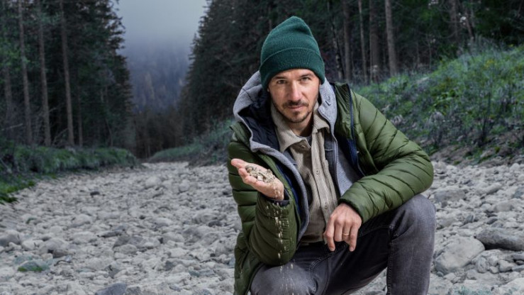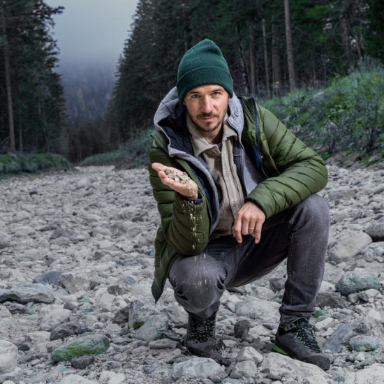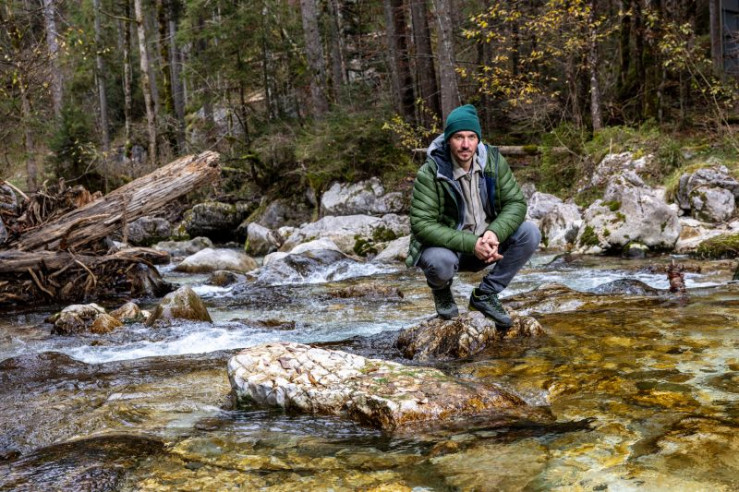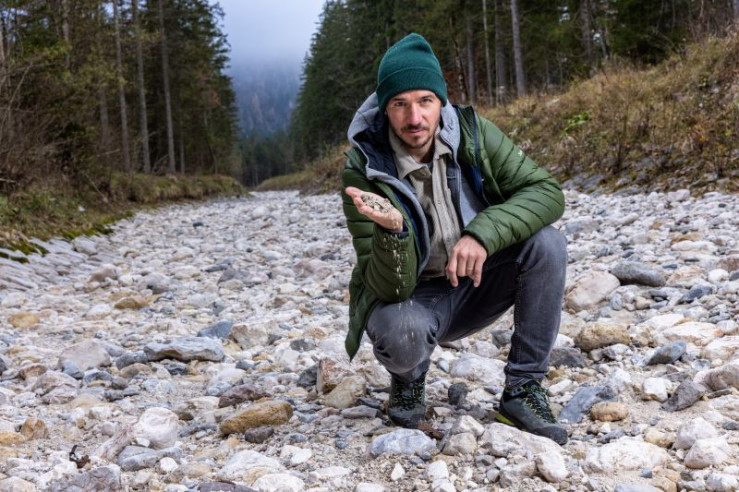 Felix Neureuther in der Ramsau (Berchtesgaden) bei Dreharbeiten rund um die Ramsauer Ache.