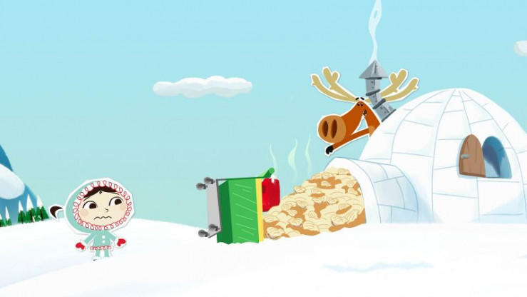 Durch ein Missgeschick hat Hubert ein Riesenloch in Inuis Iglu hineingeschlagen. Bei der Reparatur will sie ihn dann lieber nicht dabei haben, weil man bei ihm leider nie sicher sein kann, ob es nicht unabsichtlich noch schlimmer wird.