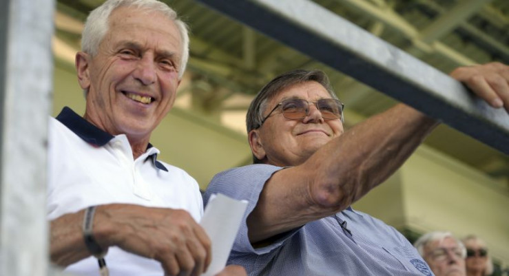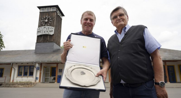 Jena: Ernst-Abbe-Sportfeld: Uwe Dern + Hans Meyer (Ex-Trainer Carl Zeiss Jena)